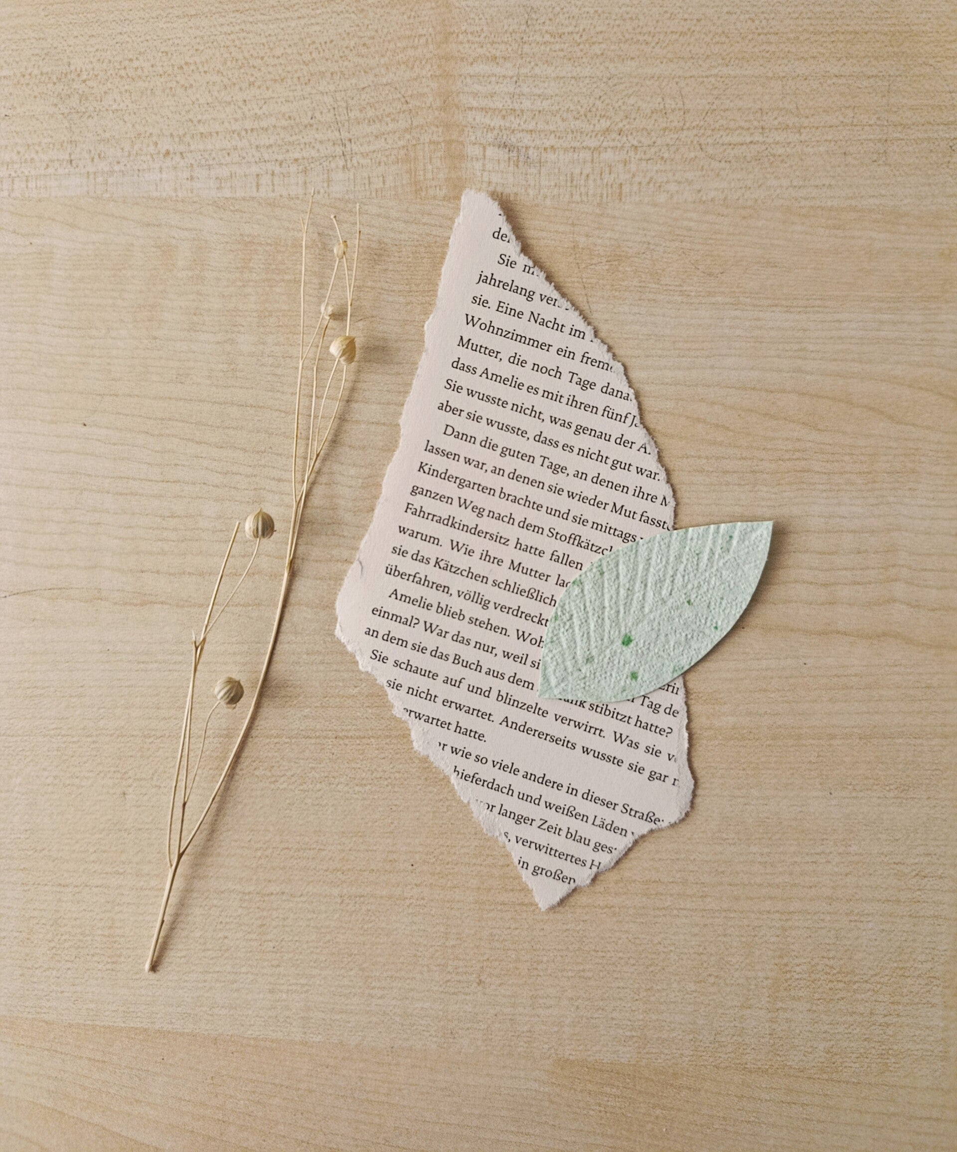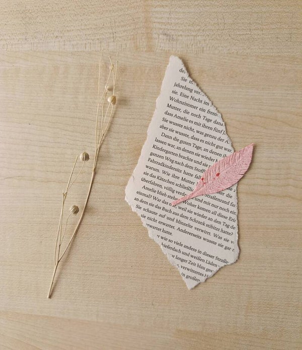 Handgeschöpfte Deko-Element Feder oder Blatt